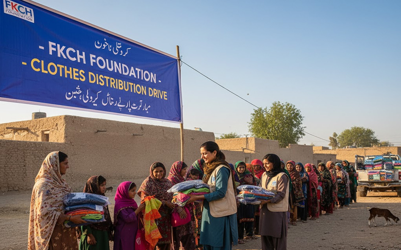 Distributing new clothes to struggling families for a dignified Eid celebration.